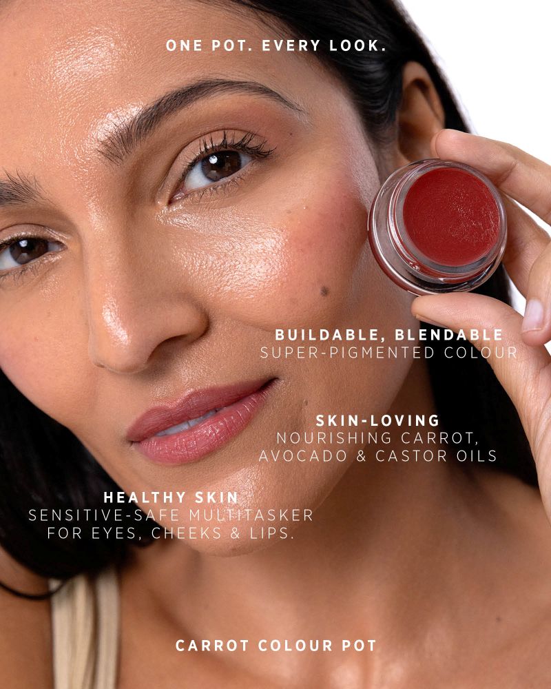 Carrot is a natural pigment, and Ere Perez is committed to harnessing nature to bring you products that look good, feel amazing & have less impact on our beautiful planet. The balm formula melts effortlessly into your skin for a dewy, natural finish that celebrates your natural beauty. So versatile for cheek colour and lip balms. These pots come with a mirror lid for on-the-go touch ups so you can add a fresh pop of colour anywhere, anytime.