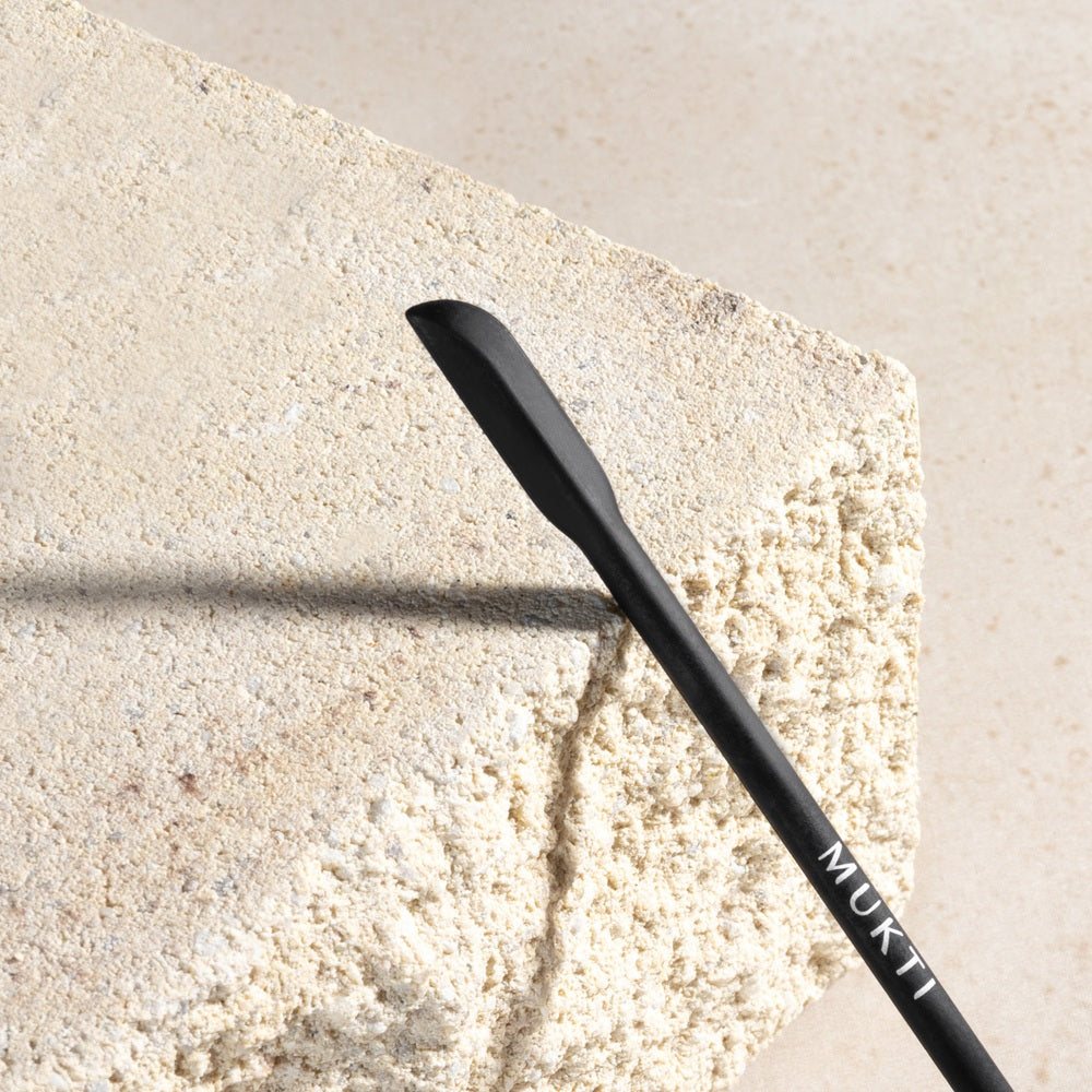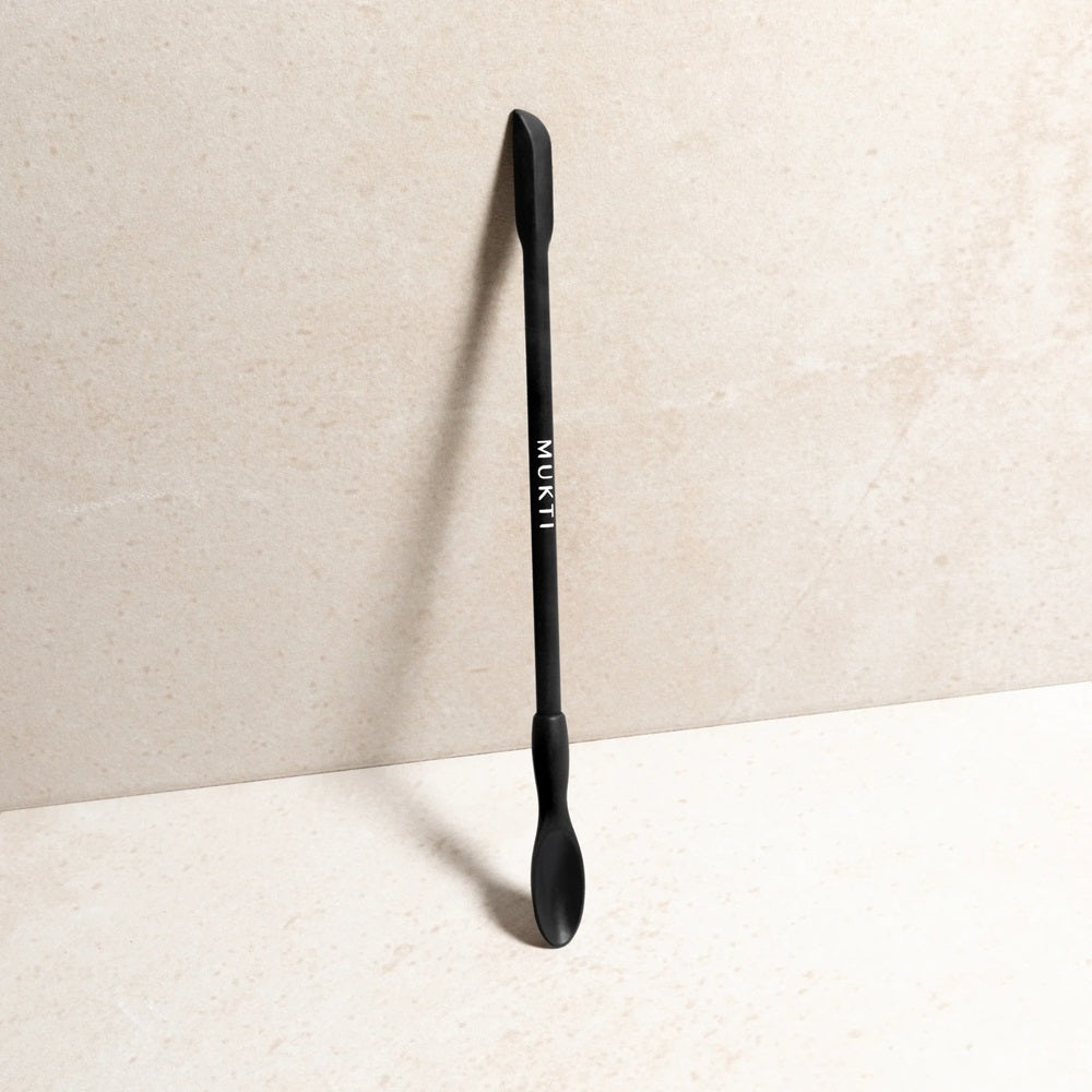 Introducing the Mukti Beauty Spatula - a sustainable, medical-grade silicone tool to help you easily retrieve and scoop up every last drop of your favourite Mukti skincare and beauty products.