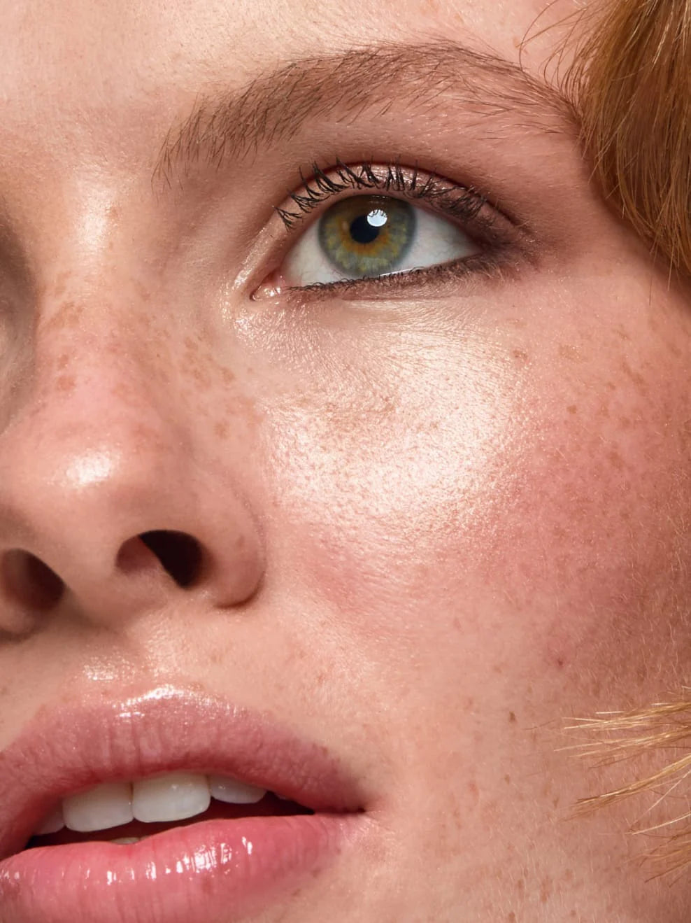 If the result is too shiny for you, you can then set a little with the ILGE Setting Powder - this will mattify the look a little and increase the hold on eyes, cheeks and lips.