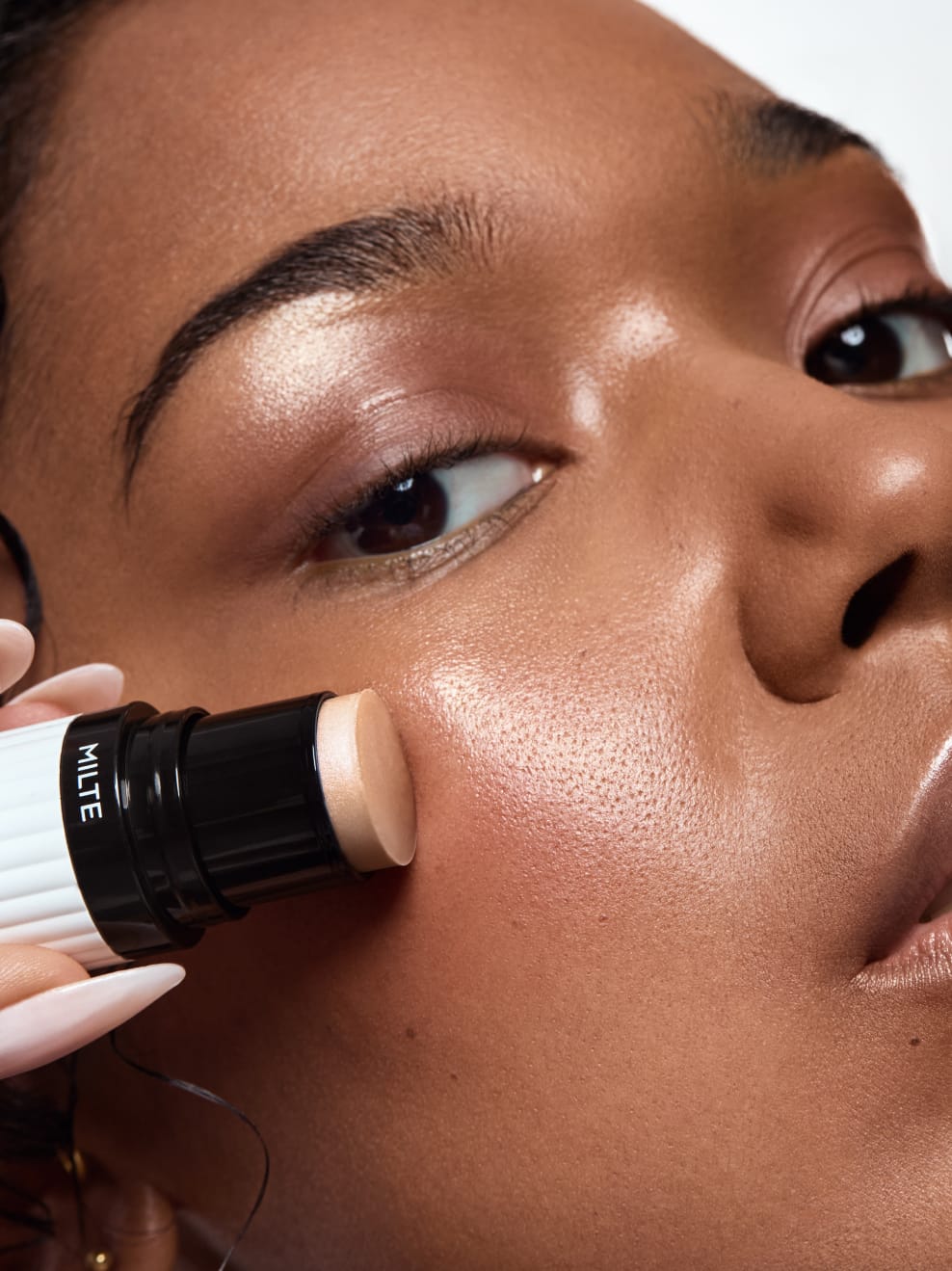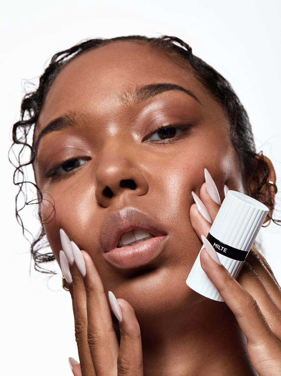 It is best to apply MILTE with your finger and lightly dab the texture onto the eyelids, lips or cheeks. Do not smudge and, for once, do without your favorite tool. You can simply repeat this for more color intensity.
