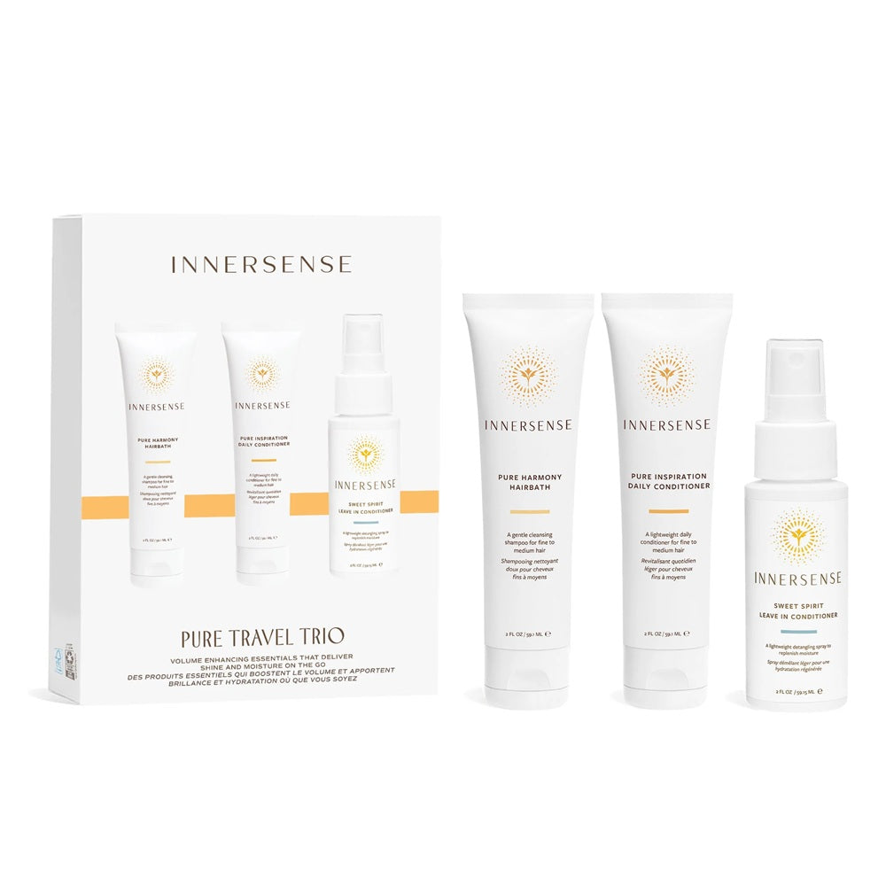 The Pure Travel Trio is the lightest hydration of the three Innersense hairbath (shampoo) & conditioner options.