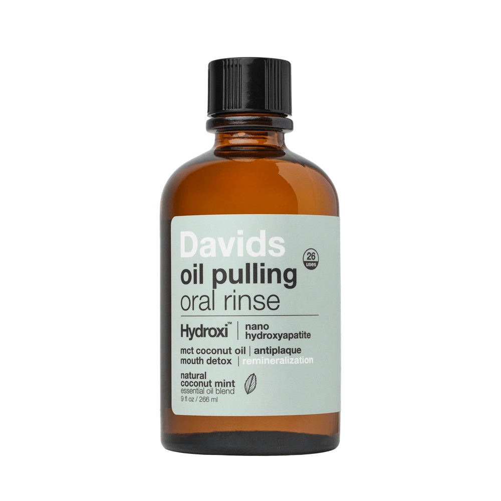 Oil pulling is an ancient Ayurvedic ritual that is believed to help "pull" bacteria and toxins from your mouth and promote oral balance. Davids Hydroxi™ oil pulling oral rinse elevates this practice with MCT coconut oil and nano hydroxyapatite (nHA) for a modern twist and high-performance clean.