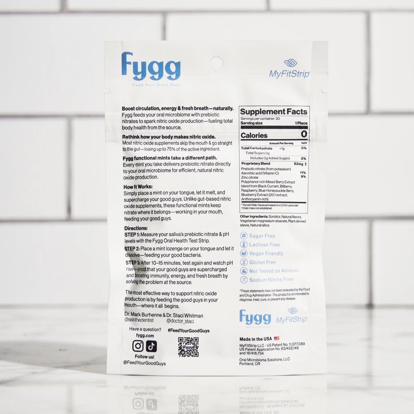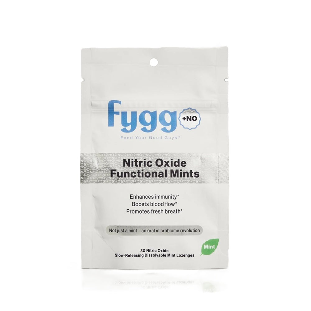 Most NO supplements go straight to the gut and quickly bypassing the oral microbiome - reducing the "hang-time" that has been shown to increase the effectiveness. Fygg Nitric Oxide Functional Mints immediately activates nitric oxide production by feeding the oral microbiome prebiotic nitrates and vitamin C in a slow releasing mint lozenge allowing the good nitric oxide producing oral bacteria to increase, generate nitric oxide while reducing the bad bacteria associated with cavities and inflammatory disease.