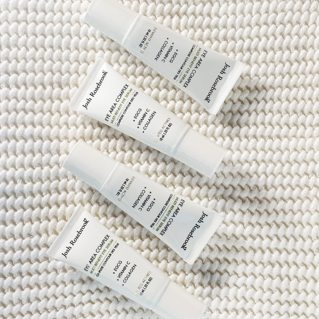 Josh Rosebrook's groundbreaking Active Stack — including EGCG, cica exosomes, bifida and saccharomyces ferments, type III micro-collagen, alpha glucosal hesperetin, micro-molecular hyaluronic acid, eye-specific botanicals (Honey Locust, Wild Ginger, Sea Buckthorn, Sweet Potato), plus caffeine, niacinamide, and a vitamin C duo — elevates performance, purity, and potency to brighten, depuff, smooth, and reinforce the fragile barrier around the eye.