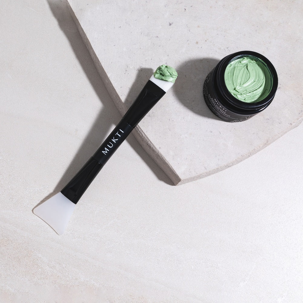 Elevate your masque ritual with Mukti's new double-ended face masking brush, designed to simplify and enhance your masque application like never before.