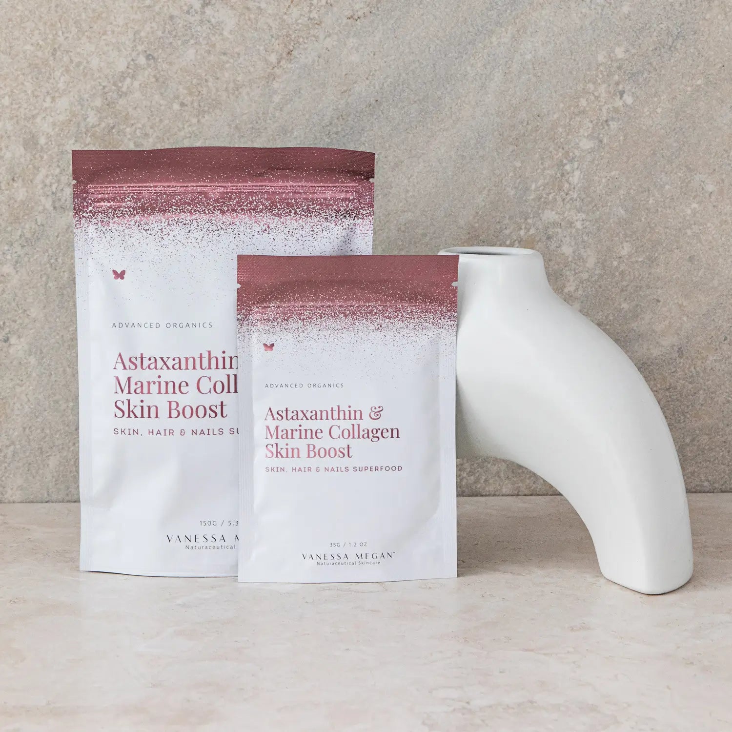 Hyaluronic acid aids in lubricating and moisturising the skin from within; astaxanthin for immune system and skin health; beetroot to boost blood flow; and powerful antioxidants blueberry and kakadu plum to help reduce oxidative stress, protect your cells from environmental damage and support cell turnover.